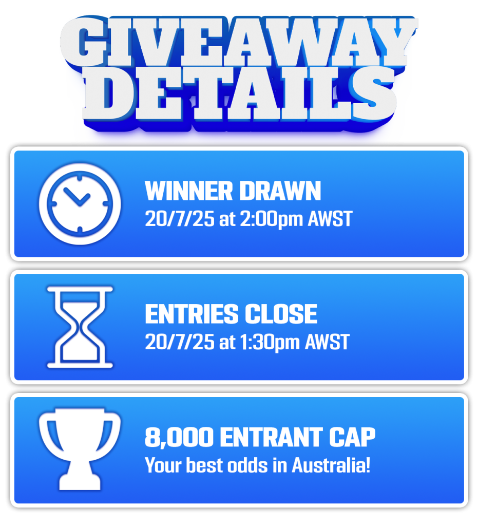 We’re known for throwing epic events that unite car lovers across Australia. And this? This is our 4th giveaway, capped at just 8,000 entrants. The odds don’t get much better.